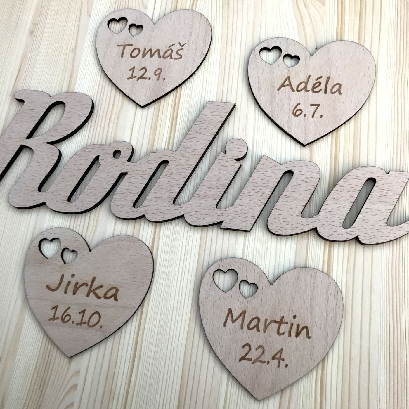Dekorace Rodina + 2 až 5 srdíček se jmény a daty