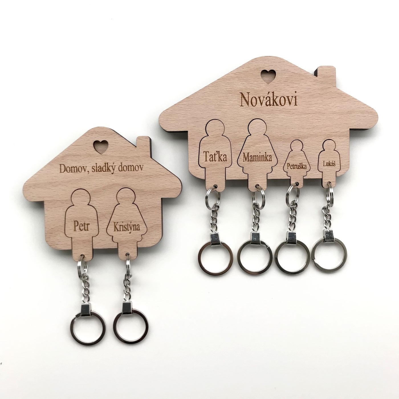 Věšák na klíče pro celou rodinu. Velikost věšáku 10x13cm pro 2 postavičky, až 10x22cm pro 5 velkých postaviček. Malá postavička má výšku 4 cm a velká 6 cm. Sami si můžete vybrat jaké postavičky si budete přát a co na nich bude napsáno. :-)