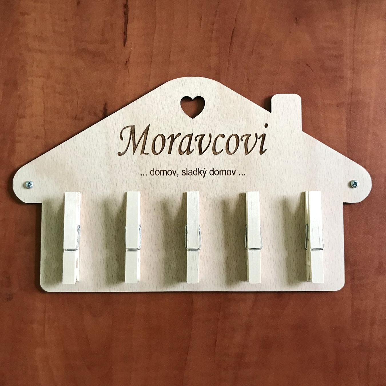 Věšák na klíče s 5 kolíčky. Velikost 30cm x 18cm. Na věšák Vám vygravírujeme text podle Vašeho přání. :-)