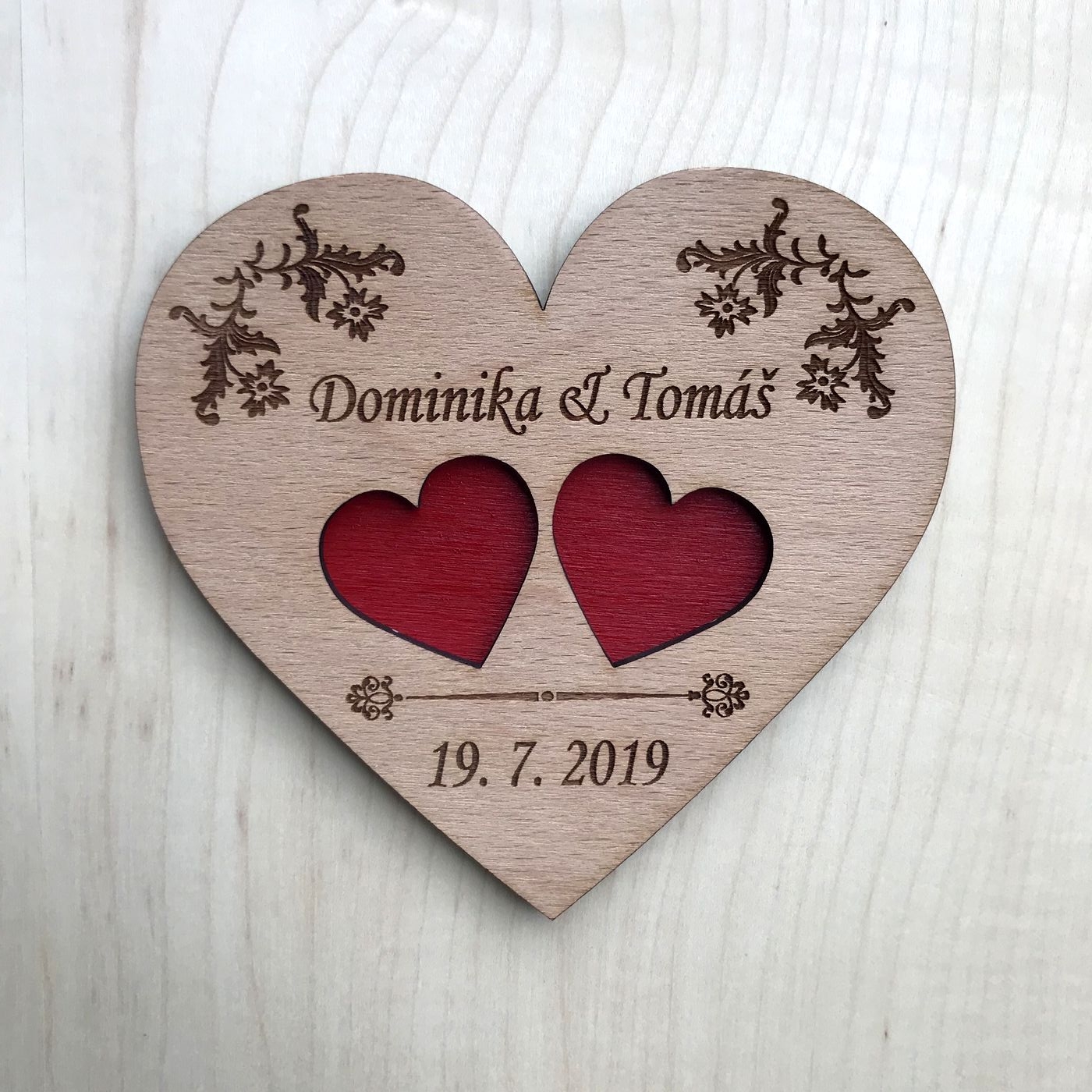 Podnos na snubní prsteny - velikost cca 15cm x 13,5cm - na podnos Vám vygravírujeme jména i datum podle vašeho přání. :-)