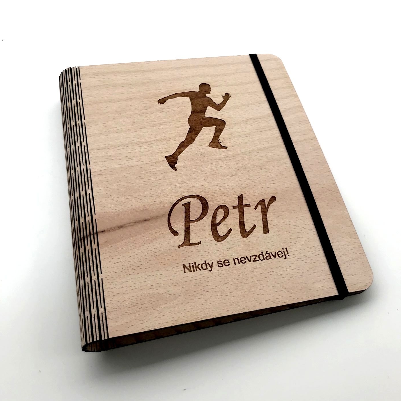 Dřevěný zápisník s unikátním dřevěným hřbetem. Velikost zápisníku 23cm x 20cm. Rozepínací vazba pro doplnění dalších listů. Dodáváno se 100 prázdnými listy velikosti A5. Text podle Vašeho přání. :-)